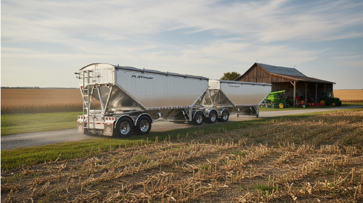 Platinum Trailers MFG takes pride in its success through ingenuity. We work with our customers to continually improve on our products and offerings. Our trailers are customizable to your asking. our product lineup includes Aluminum hopper B-train Grain trailers , Aluminum Tridem / Tandem Grain trailers, Pony dump trailers and soon to be dump trailer. With smooth Aluminum walls welded (On inside only) Platinum trailers are one strongest and best looking on the market!